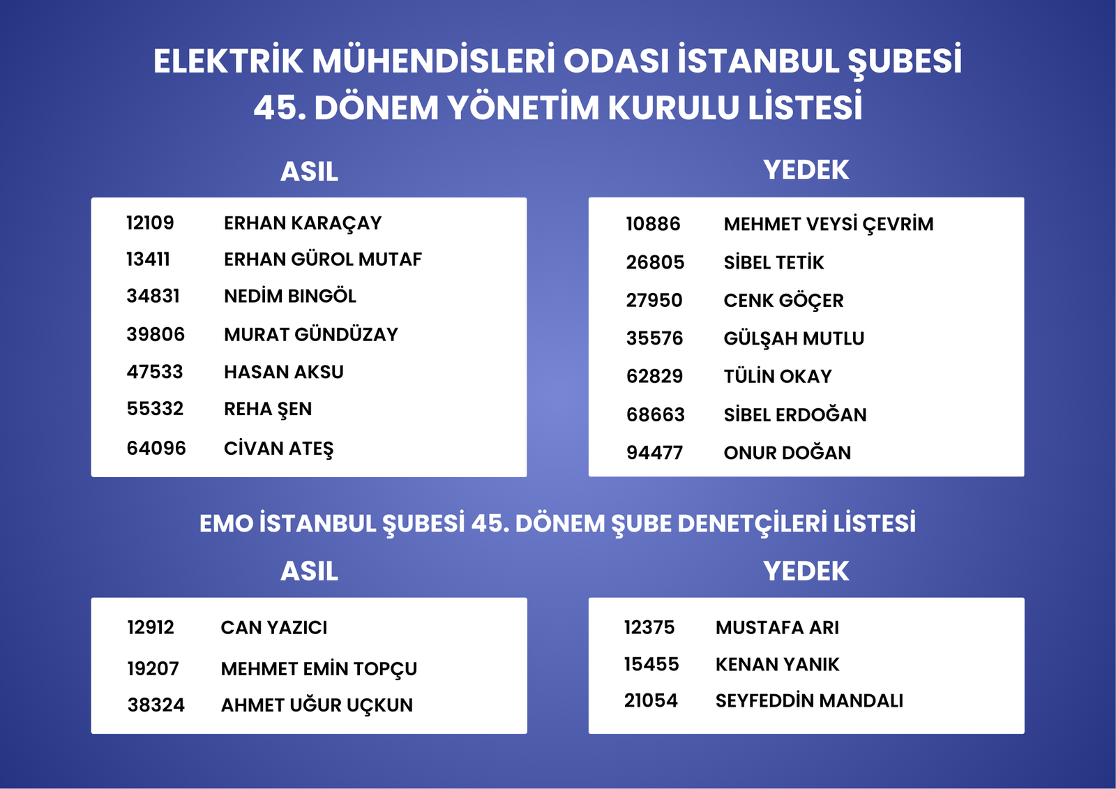 21-22 Şubat 2026 Tarihlerinde gerçekleşecek olan Elektrik Mühendisleri Odası İstanbul Şubesi Genel Kurul ve Seçimlerine Erhan KARAÇAY ile başlayan Demokrat Mühendisler – Mavi Liste olarak Katılıyoruz. Yeni dönem Çalışma Programımız ile Aday Listemize linkten ulaşabilir, sosyal medya vs üzerinden dostlarınızla paylaşabilir, demokratların en geniş birlikteliği olan listemize birlikte yönetmek adına destek olabilirsiniz.
